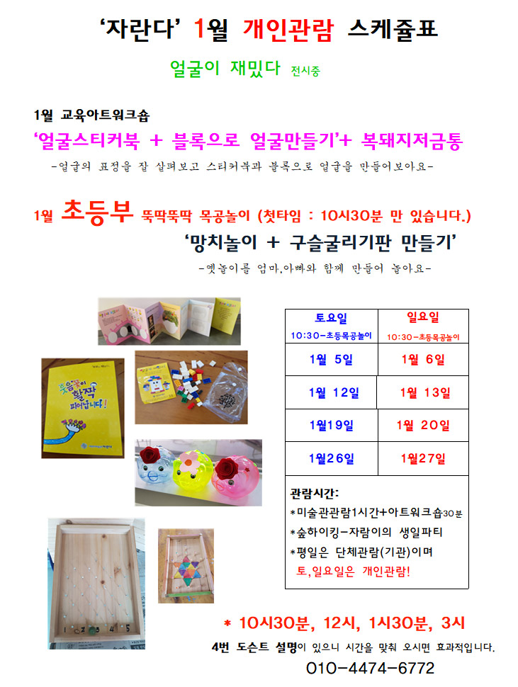 교육일정 | 1월 개인관람 안내 페이지 정보 작성자 자란다 작성일18-12-25 00:10 조회12,349회 댓글0건 관련링크 이전글 다음글 검색 목록 본문 많은 참여 부탁드립니다. 댓글 등록된 댓글이 없습니다. 이전글 다음글 검색 목록