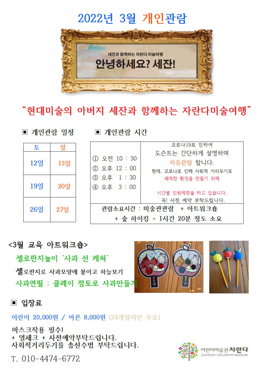 전시일정 | 2022년 3월 개인관람 안내 페이지 정보 작성자 자란다 작성일22-03-05 12:54 조회6,749회 댓글0건 관련링크 이전글 다음글 검색 목록 본문 많은 관심 부탁드립니다. 댓글 등록된 댓글이 없습니다. 이전글 다음글 검색 목록